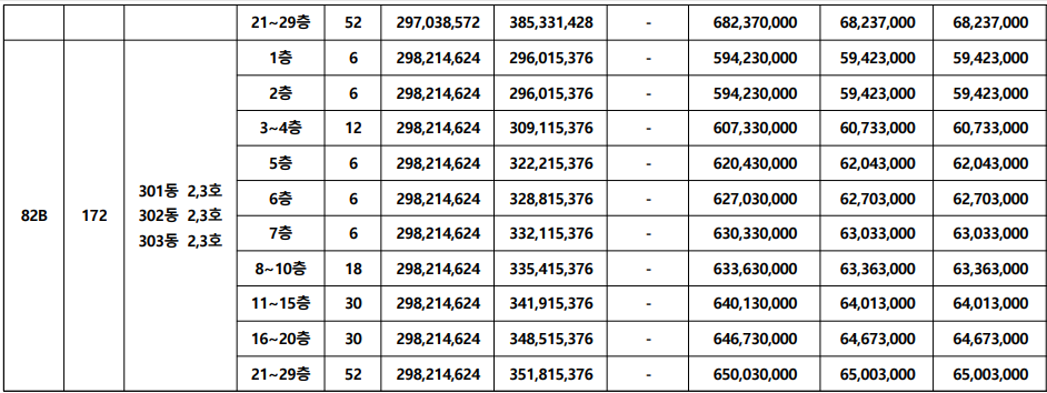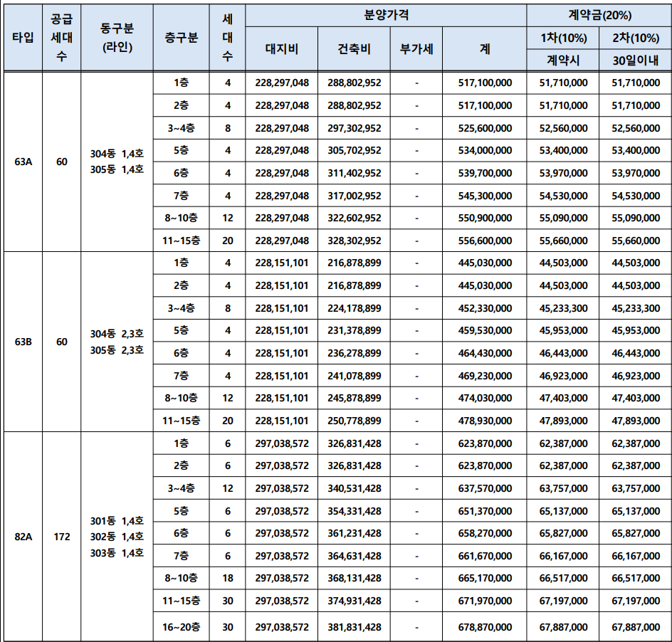 ※ 전용 59㎡는 기존 1·2단지 대비 약 8000만원 인상, 84㎡는 약 300만원 상승된 수준입니다